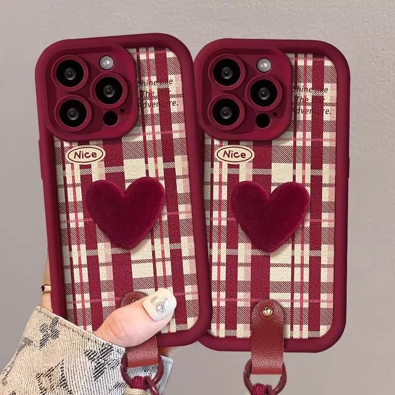 This phone case features a classic checkered pattern with a soft heart design, giving it a trendy and fashionable look. It comes with a strong hand strap for easy carrying and better grip, making it convenient for daily use. Made from durable and flexible material, the case helps protect your phone from scratches, dust, and minor drops. The raised edges around the camera and screen provide extra safety, while the slim design keeps the phone lightweight and comfortable to use.