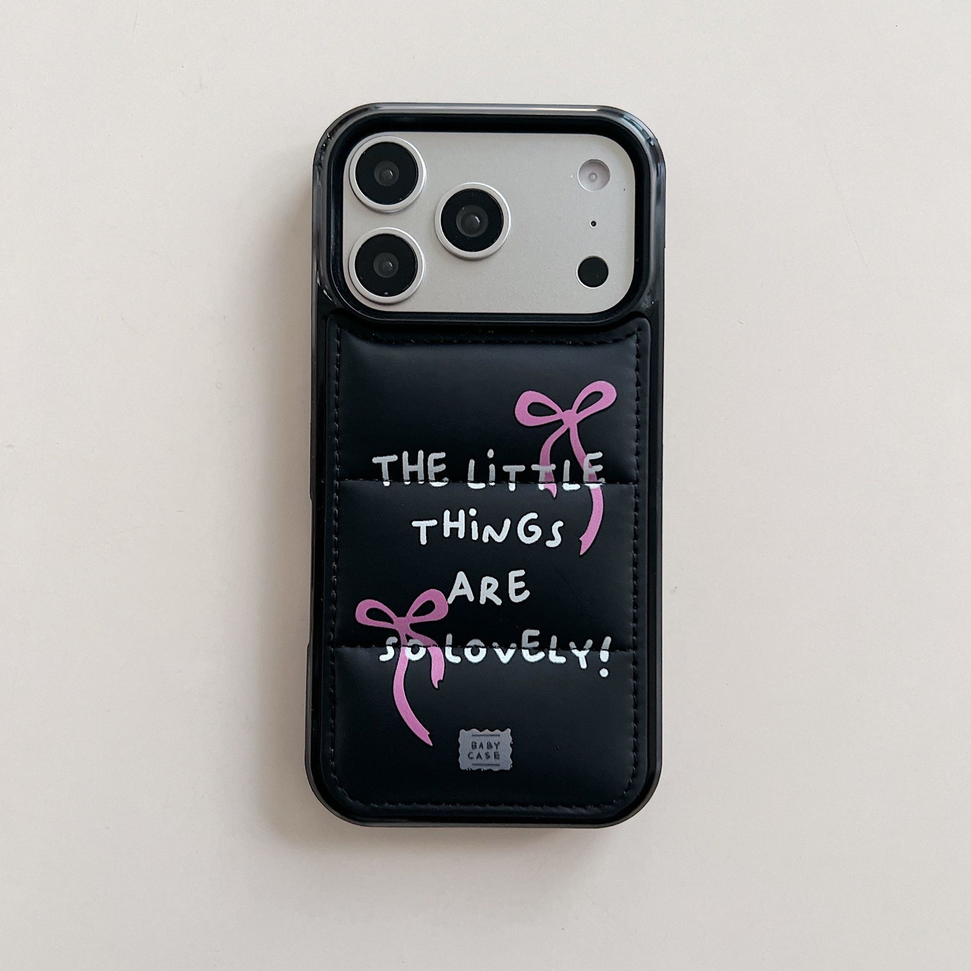 This iPhone case features a cute pink bow design with a soft stitched-style back cover. The light heart pattern adds a simple and clean look, while the protective edges help keep the phone safe from everyday bumps and scratches. The raised camera frame provides added lens protection, and the slim design ensures a comfortable grip. Perfect for users who prefer a soft, cute, and durable case for ...