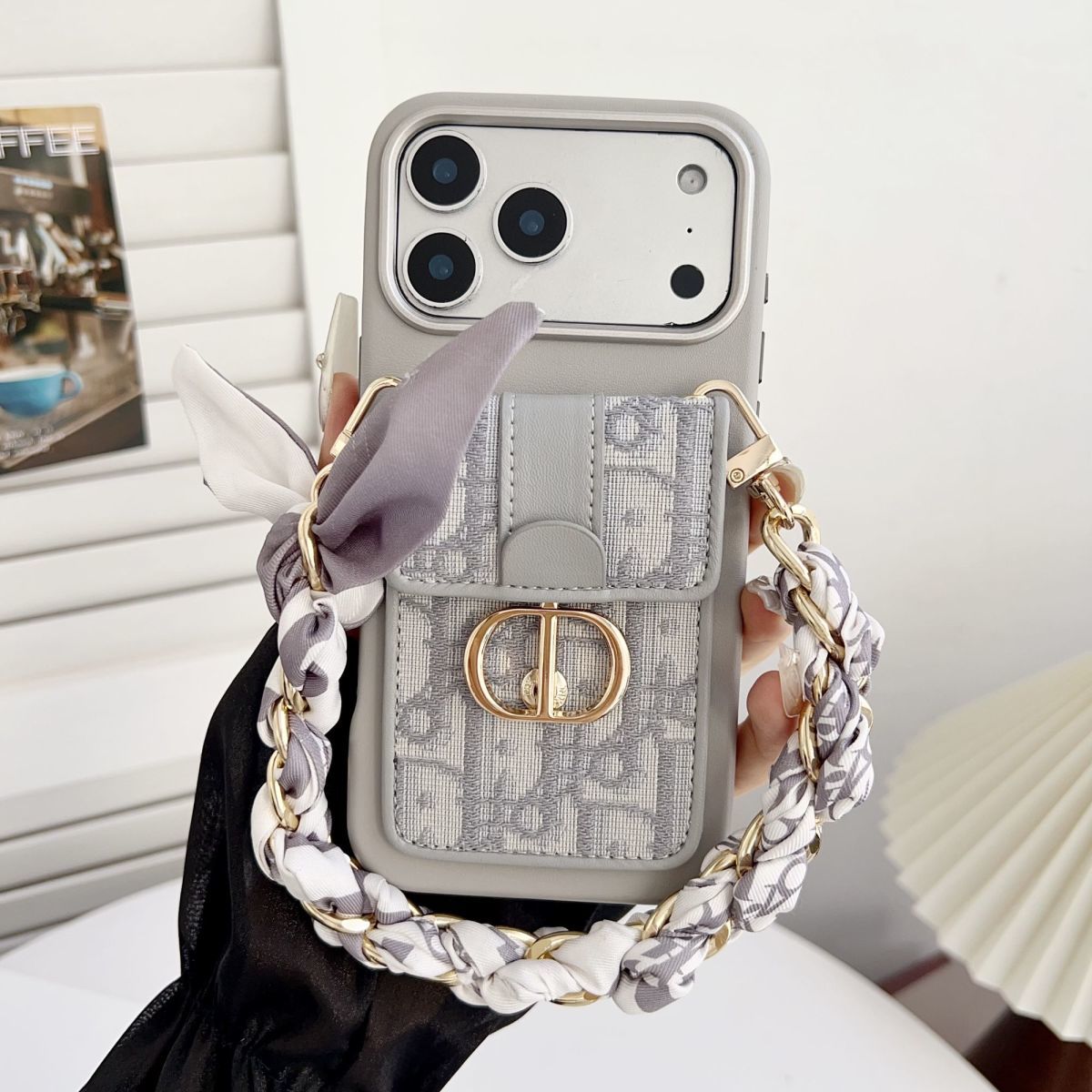 This designer back cover is compatible with iPhone models and crafted for users who want fashion and function together. The case features a premium fabric-textured card holder with a secure flap closure and an elegant metal buckle. A detachable braided chain strap allows easy carrying as a mini sling, making it ideal for travel, shopping, or daily use. The sturdy frame offers reliable protection while precise cutouts ensure smooth access to camera, buttons, and ports.