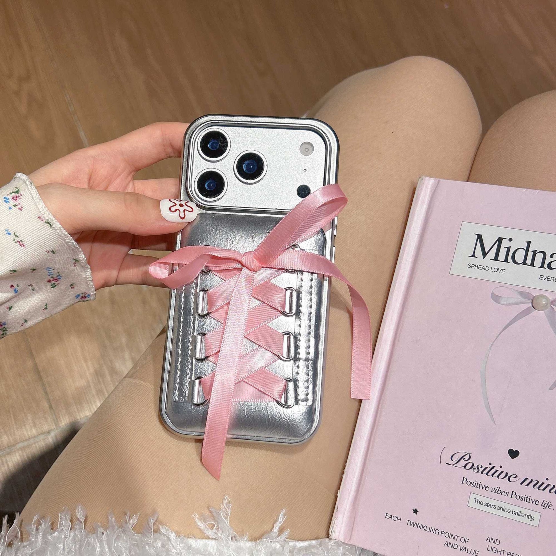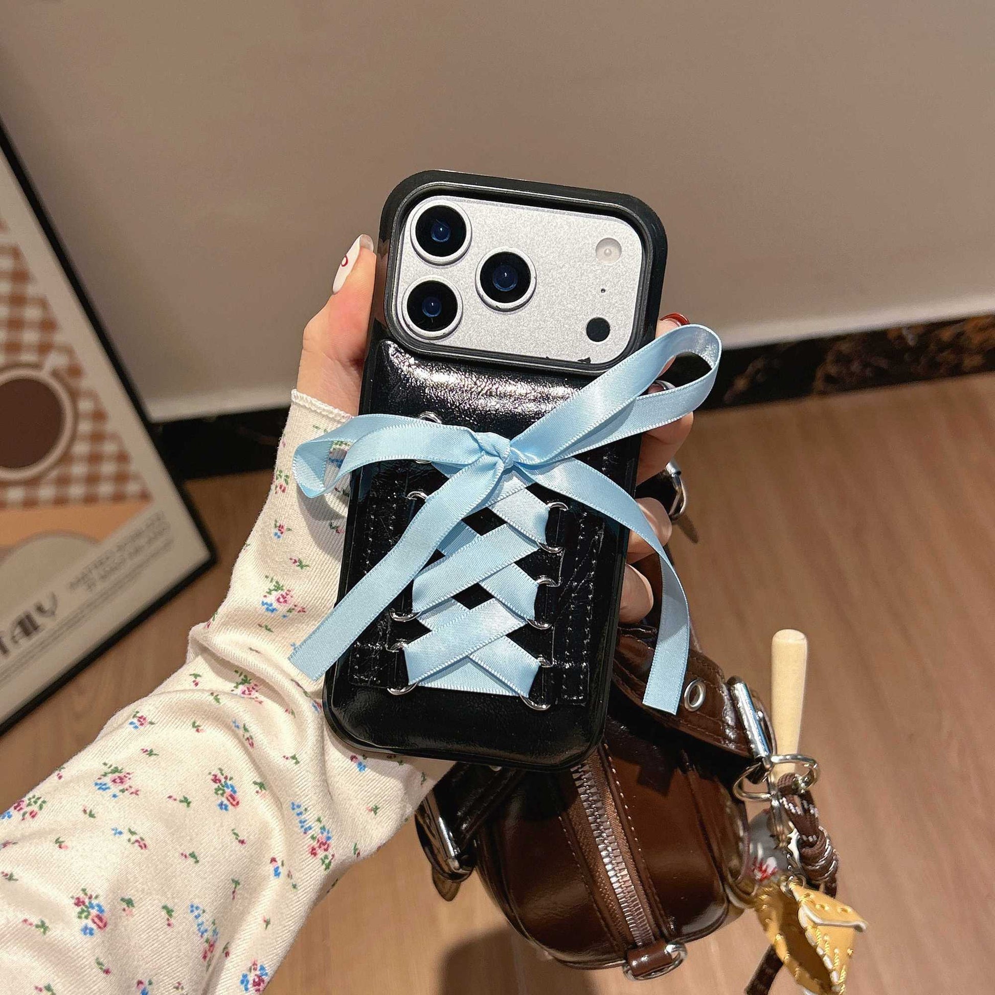 This iPhone back cover features a lace-up ribbon design with a smooth leather-look finish. The ribbon detail gives the case a neat and stylish appearance while keeping the phone easy to hold. The case is slim and lightweight, making it suitable for everyday use. It helps protect the phone from scratches, dust, and minor drops. Raised edges around the camera and screen provide added protection. Precise cut-outs allow easy access to all buttons, ports, and the camera.