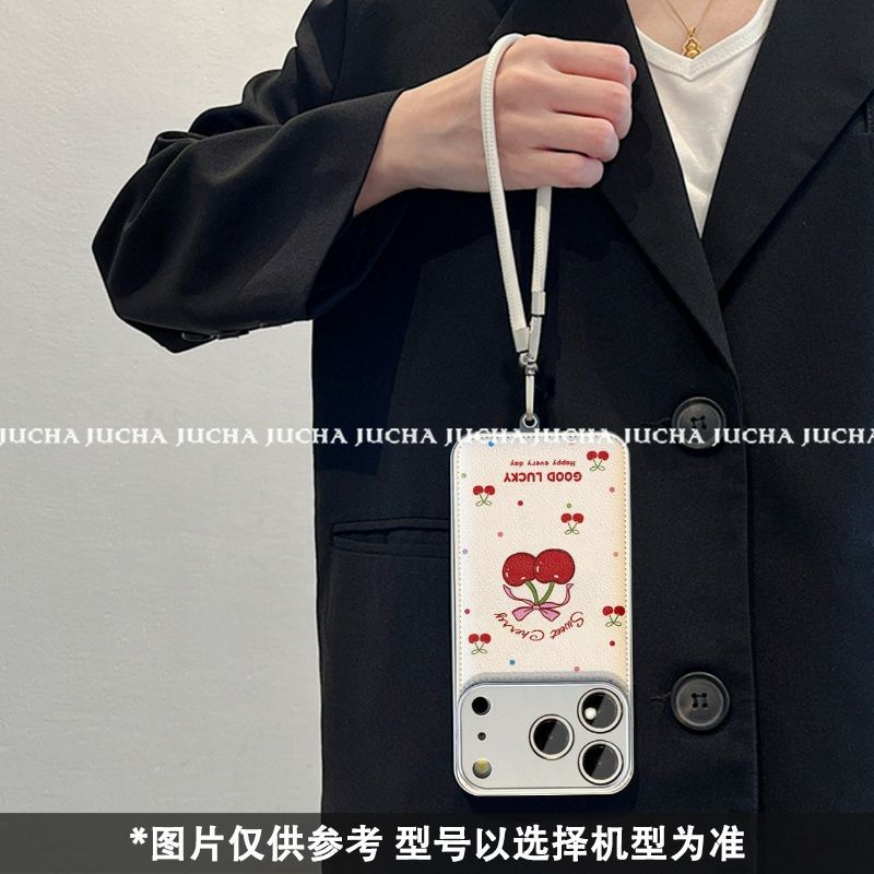 This phone case features a soft leather-texture back with a cute “Sweet Cherry” print and colorful dot details, giving your phone a fresh and cheerful look. It comes with a strong wrist strap for secure holding and easy carrying. Made from durable and flexible material, the case helps protect your phone from scratches, dust, and minor drops. The raised camera and screen edges provide extra safety, while the slim and lightweight design ensures comfortable daily use.