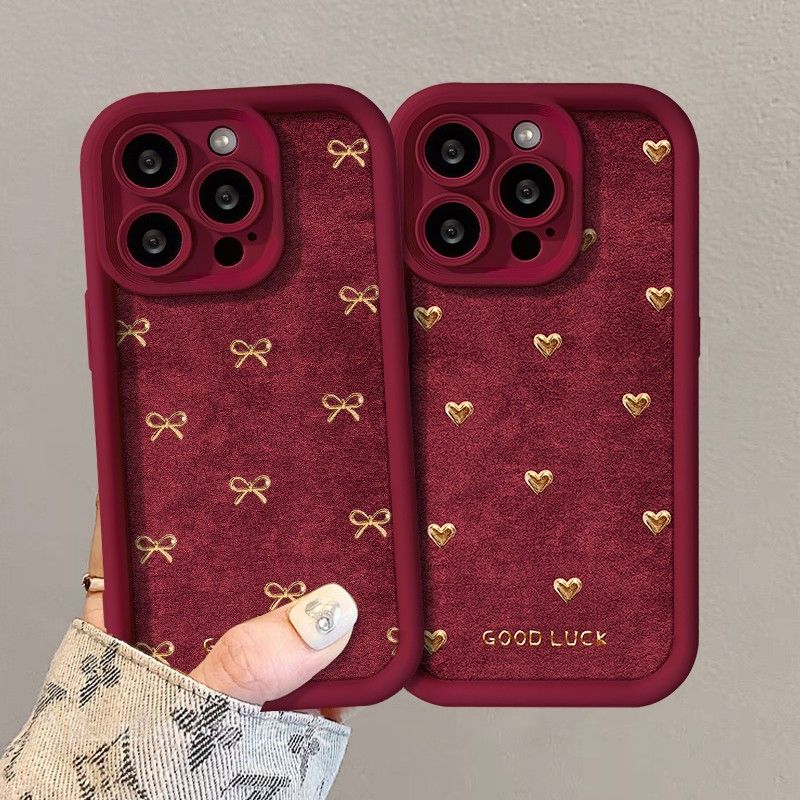 This phone case features a soft velvet-texture back with elegant bow patterns and a “Good Luck” detail, giving it a premium and classy look. It comes with a strong hand strap for easy carrying and secure grip. Made from durable and flexible material, the case helps protect your phone from scratches, dust, and minor drops. The raised camera and screen edges provide extra safety, while the slim design ensures comfortable daily use.